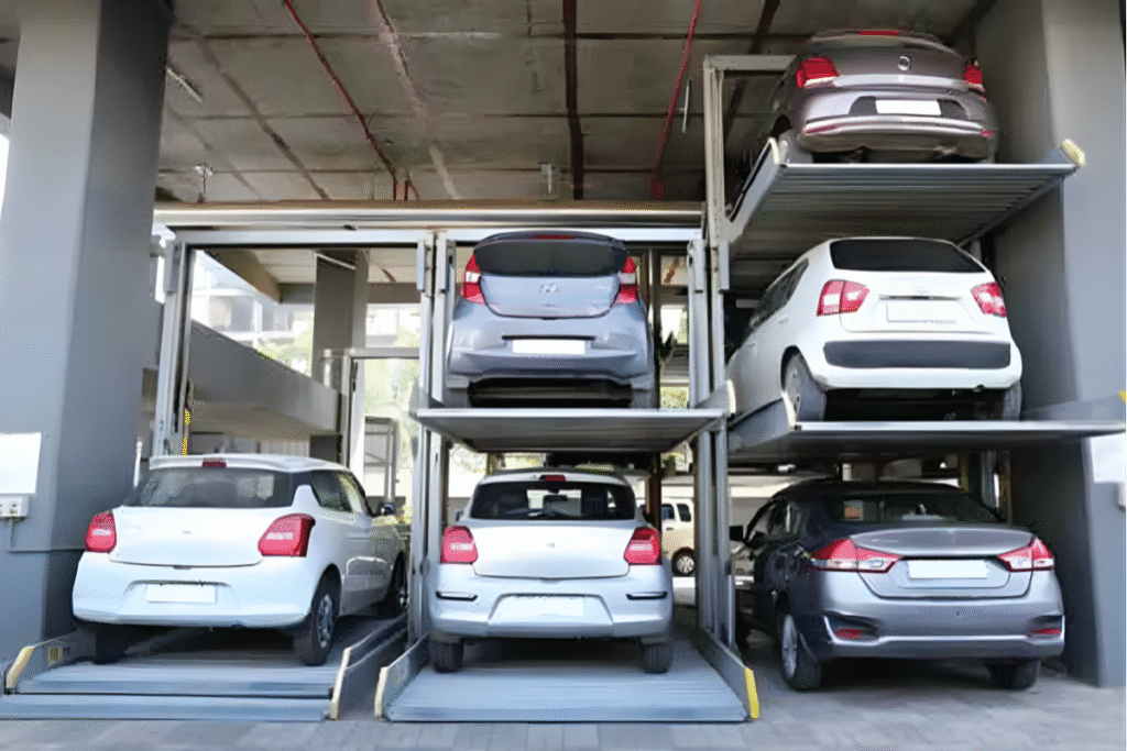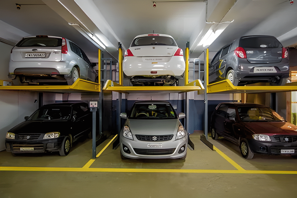 Space International Merchant high-performance Stack Parking Systems provide a smart way to multiply parking capacity without increasing land space. Ideal for commercial buildings, residential complexes and corporate spaces, our Parklift models (411, 413, 421, 440, 443) ensure safe vertical parking with smooth lifting technology. The structure is sturdy, low maintenance and engineered for maximum efficiency—making it a perfect solution for premium space management in urban areas.