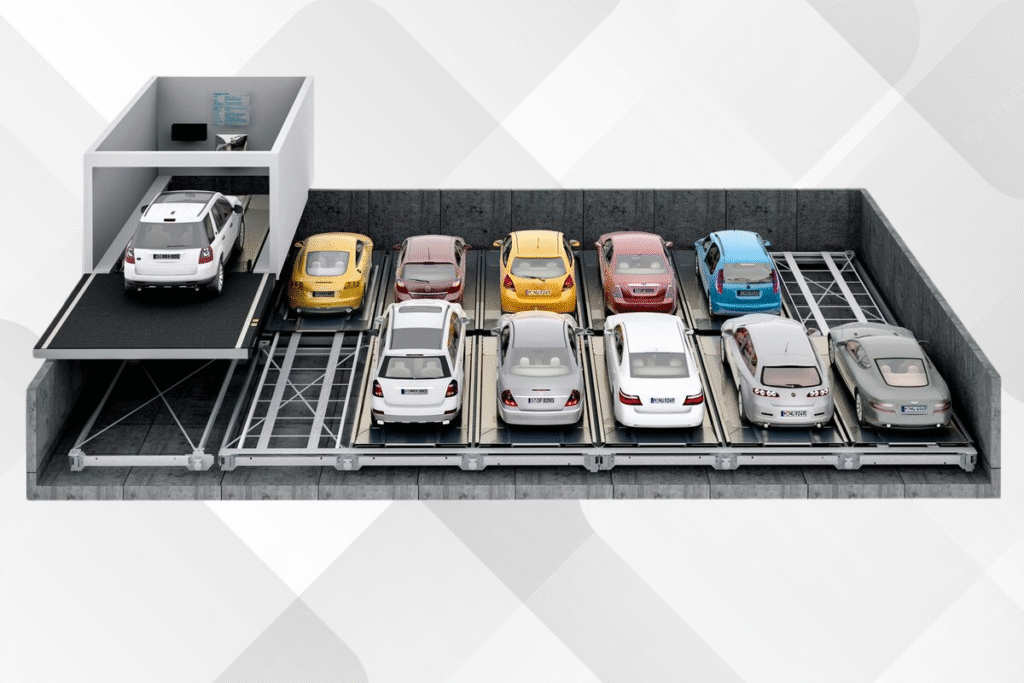 Level Parker 570 and 590 provide flexible horizontal car management using mechanical shifting platforms. This design is excellent for buildings with width availability but low vertical clearance. It allows fast independent access to each parking slot, reduced construction cost and a smooth driving experience inside the parking bay.